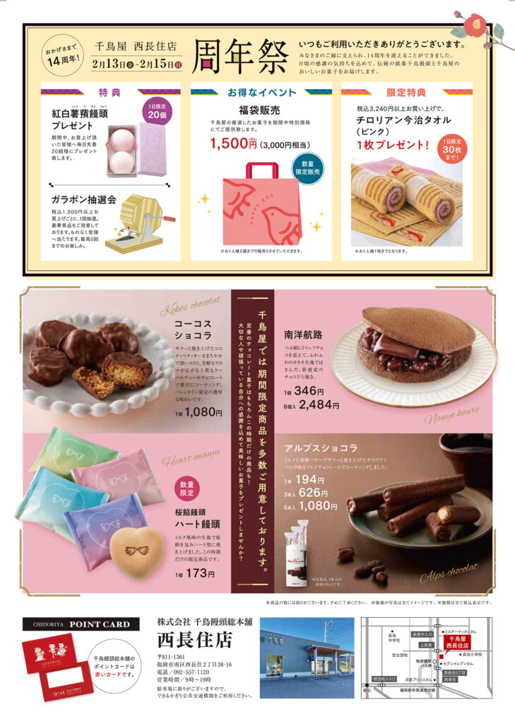千鳥屋 西長住店 周年祭開催のお知らせ
