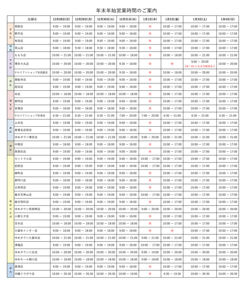 ご来店の際は、各店舗の営業時間をご確認の上、お越しくださいますようお願い申し上げます。